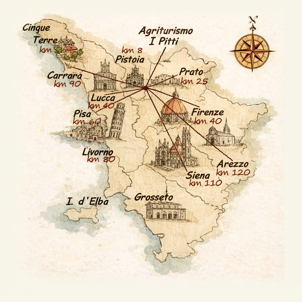 La posizione centrale in Toscana è uno dei grandi punti di forza dell'Agriturismo I Pitti.